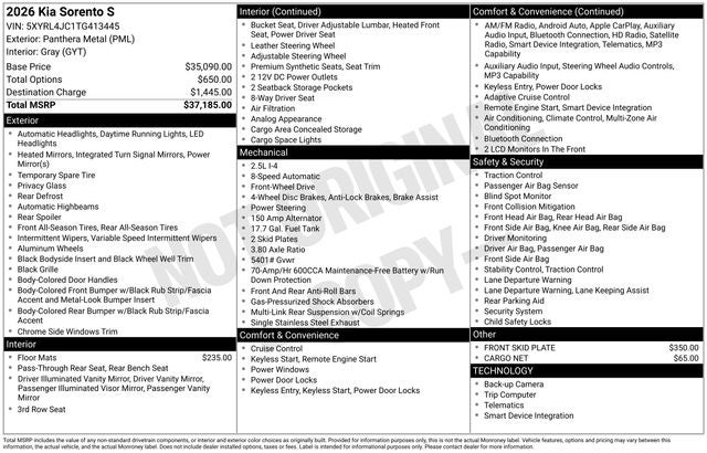 Price excludes tax, title, license, $23 Convenience Charge and $436 dealer administrative fee. 23/31 City/Highway MPG Price includes: $2000 - KFA Dealer Choice Program: $2000 discount and 5.25% APR for 36 months. $30.08 per $1000 financed. Available to well qualified buyers who finance through Kia Finance America. 506. Exp. 02/02/2026