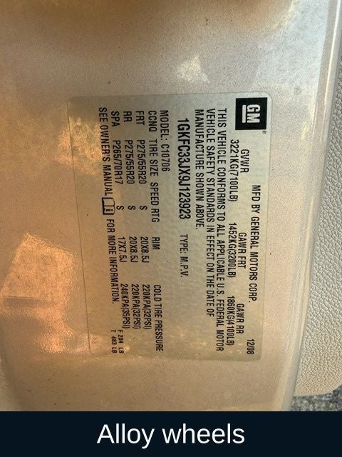 - Tires, P265/65R18 all-season, blackwall, TL AL2 (Requires 2WD models and (XFE) XFE - Xtra Fuel Economy.)