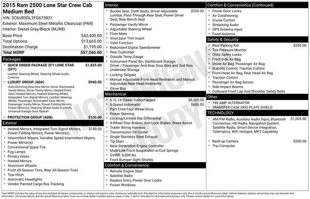 So don't wait—come in and test drive this impressive 2015 Ram 2500 Lone Star today. We're confident you'll be impressed by its performance, features, and overall value. Let us show you why this truck is the perfect choice for your next adventure.