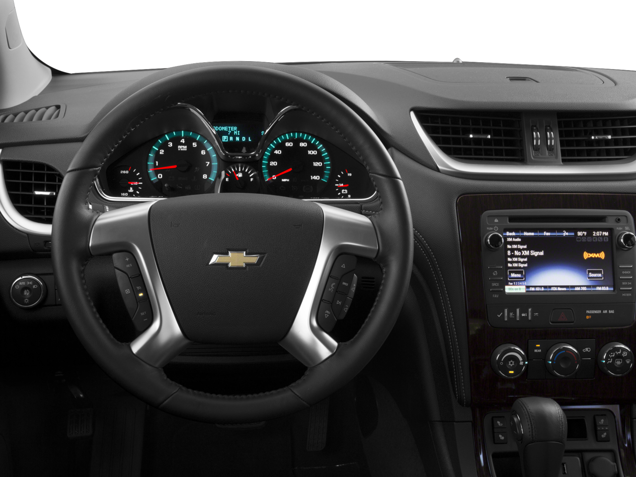 120-Volt 3-Prong Household-Style Power Outlet, 18 x 7.5 Machined Aluminum Wheels, 3.16 Axle Ratio, 3rd row seats: split-bench, 4-Wheel Disc Brakes, 6 Speakers, 7-Passenger Seating (2-2-3 Seating Configuration), 8-Passenger Seating (2-3-3 Seating Configuration), 8-Way Power Driver Seat w/Power Lumbar, ABS brakes, Air Conditioning, Alloy wheels, AM/FM radio: SiriusXM, Bluetooth® For Phone, Body-Color Bodyside Moldings, Body-Color Heated Power-Adjustable Outside Mirrors, Bodyside moldings, Bose 5.1 Surround Sound 10-Speaker System, Brake assist, Bumpers: body-color, CD player, Compass, Delay-off headlights, Driver door bin, Driver vanity mirror, Dual front impact airbags, Dual front side impact airbags, Electronic Stability Control, Emergency communication system: OnStar, Enhanced Driver Information Center, Exterior Parking Camera Rear, Four wheel independent suspension, Front anti-roll bar, Front Bucket Seats, Front Center Armrest w/Storage, Front Fog Lamps, Front fog lights, Front reading lights, Frontal & Side-Impact Airbags, Fully automatic headlights, Heated door mirrors, Illuminated entry, Interior Wood Grain Center Stack & Interior Trim, Leather-Wrapped Steering Wheel, Low tire pressure warning, Occupant sensing airbag, Outside temperature display, Overhead airbag, Panic alarm, Passenger door bin, Passenger vanity mirror, Power door mirrors, Power driver seat, Power steering, Power windows, Preferred Equipment Group 1LT, Premium Cloth Seat Trim, Radio data system, Radio: Chevrolet MyLink w/Rear Seat Entertainment, Radio: Color Touch AM/FM/SiriusXM/CD Player, Rear air conditioning, Rear All-Weather Cargo Mat (LPO), Rear anti-roll bar, Rear Audio System Controls, Rear Entertainment System w/Remote Control, Rear Park Assist, Rear reading lights, Rear seat center armrest, Rear window defroster, Rear window wiper, Remote keyless entry, Remote Vehicle Start, Roof rack: rails only, Security system, SiriusXM Satellite Radio, Speed control, Split folding rear seat, Spoiler, Standard Speaker System, Steering wheel mounted audio controls, Tachometer, Telescoping steering wheel, Tilt steering wheel, Traction control, Traveler's Package, Tri-Zone Automatic Climate Control, Trip computer, Turn signal indicator mirrors, Variably intermittent wipers, Voltmeter, Wheel Locks.