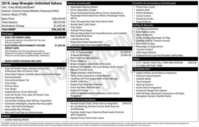 With its exceptional features, impressive performance, and timeless Jeep DNA, this 2018 Wrangler Unlimited Sahara is a true standout in the SUV segment. Experience the freedom and adventure that only a Jeep can provide. Visit our showroom today to take this remarkable vehicle for a test drive and discover how it can transform your driving experience.