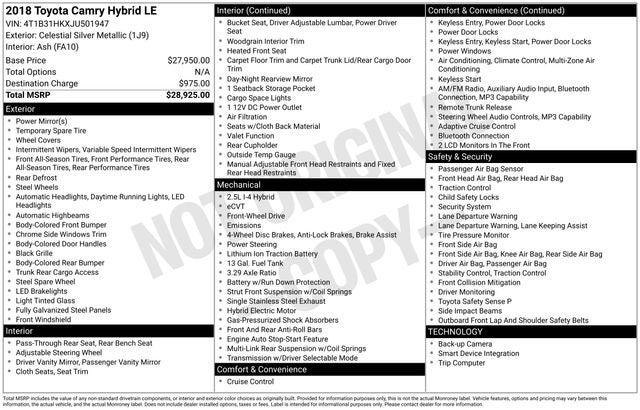 2018 Toyota Camry Hybrid LE