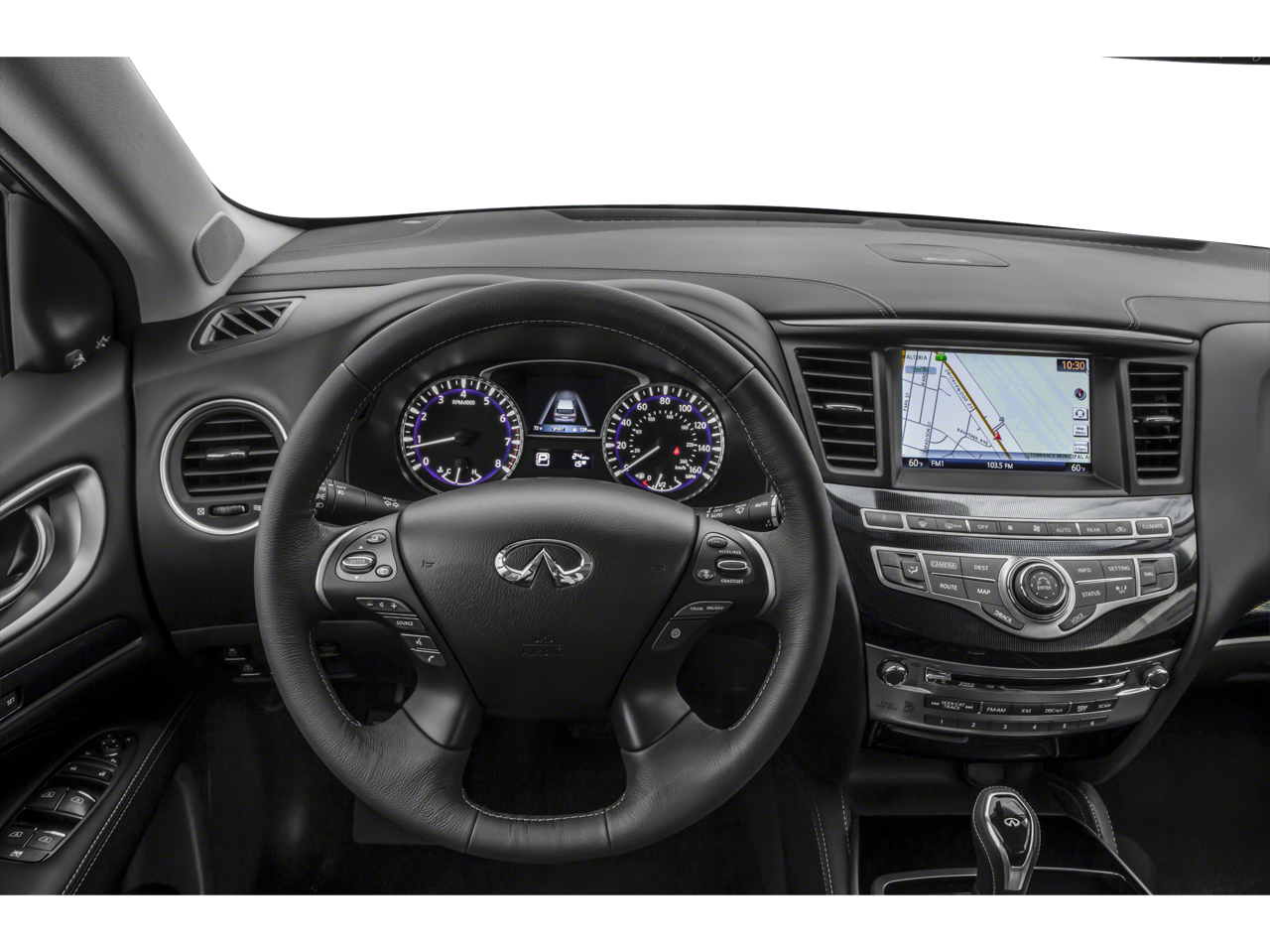 The QX60 PURE's impressive fuel efficiency, with an EPA-estimated 20 city/27 highway MPG, ensures you can enjoy the open road without frequent stops at the pump. Its well-appointed cabin, complete with leather-wrapped steering wheel, dual-zone climate control, and advanced infotainment system, provides a sophisticated and comfortable environment for you and your passengers.