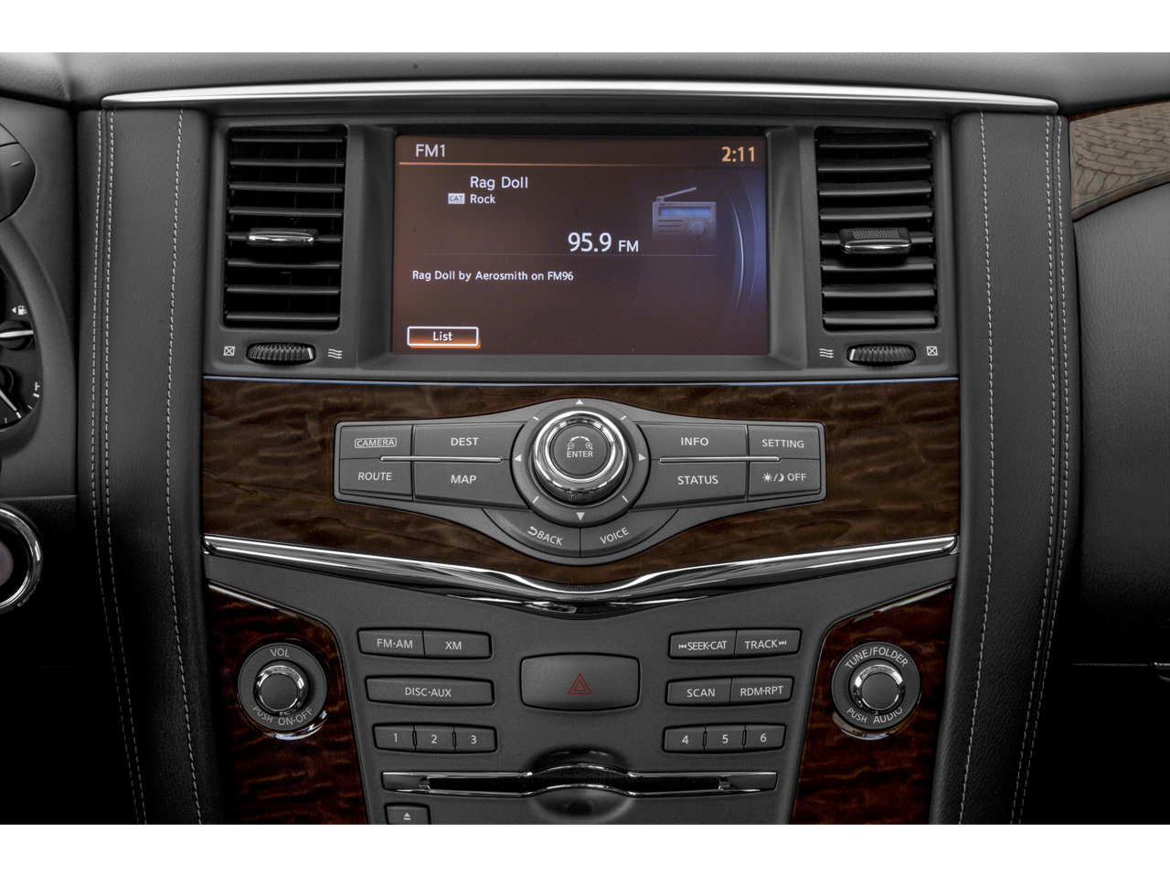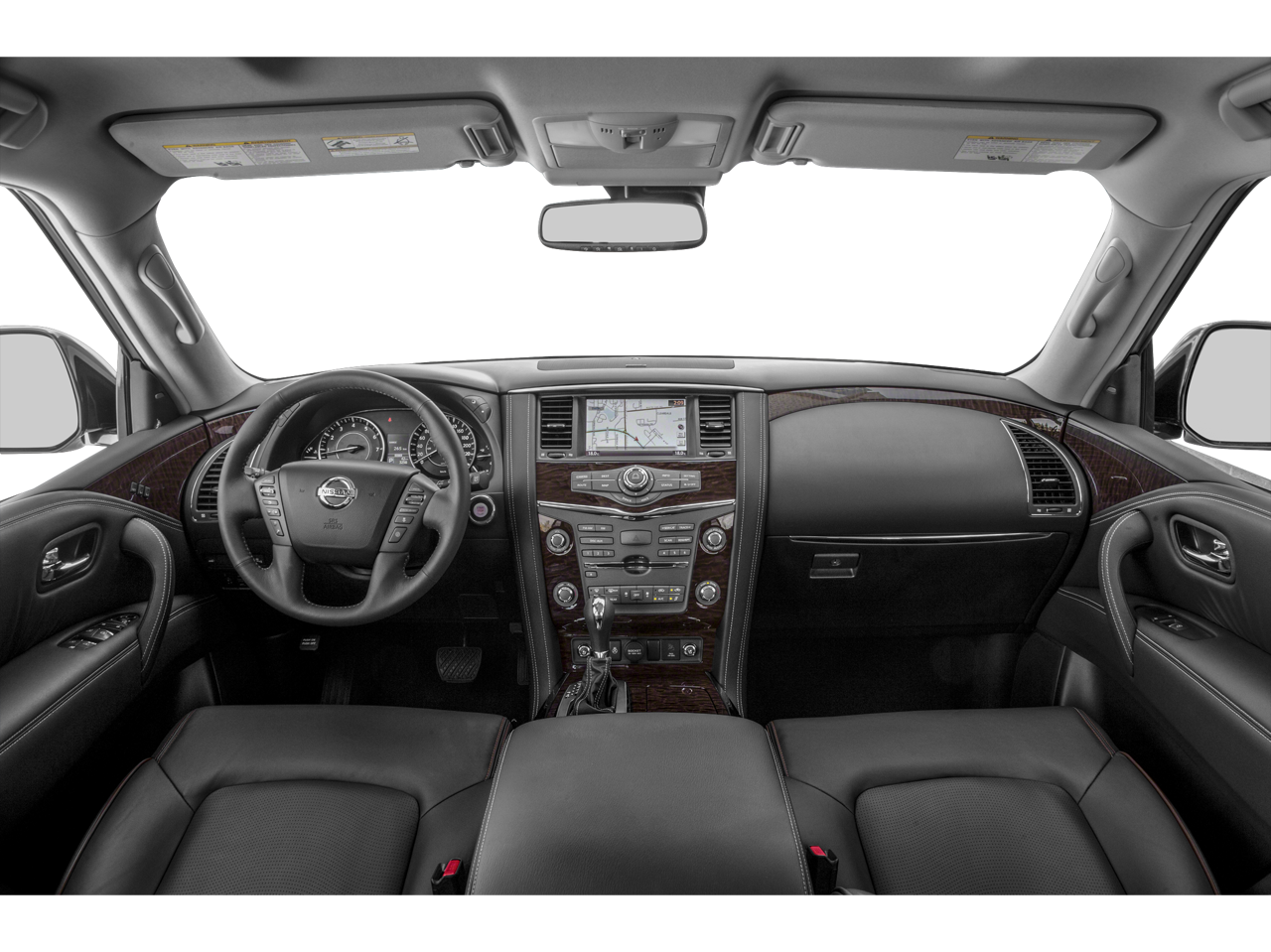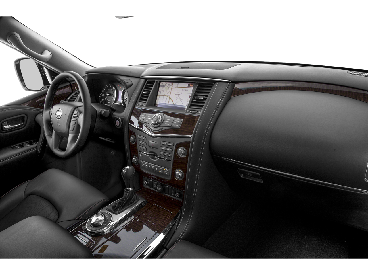 13 Speakers, 2.937 Axle Ratio, 2nd Row Captain's Chairs, 2nd Row Center Console w/ Padded Armrest, 3rd row seats: split-bench, 4-Wheel Disc Brakes, A/V remote, ABS brakes, Air Conditioning, Alloy wheels, AM/FM radio: SiriusXM, Anti-whiplash front head restraints, Auto tilt-away steering wheel, Auto-dimming door mirrors, Auto-dimming Rear-View mirror, Auto-leveling suspension, Automatic temperature control, Brake assist, Bumpers: body-color, Captain's Chairs Package, Carpeted Floor Mats w/ Captain Seat Package, CD player, Cross Bars, Delay-off headlights, Driver door bin, Driver vanity mirror, Dual front impact airbags, Dual front side impact airbags, Electronic Stability Control, Emergency communication system: NissanConnect Services, Four wheel independent suspension, Front anti-roll bar, Front Bucket Seats, Front Center Armrest, Front dual zone A/C, Front fog lights, Front reading lights, Fully automatic headlights, Garage door transmitter: HomeLink, Headphones, Heated & Cooled Front Bucket Seats w/Driver Memory, Heated door mirrors, HEATED FRONT SEATS, Heated rear seats, Heated steering wheel, Illuminated entry, Leather Shift Knob, Leather-Appointed Seat Trim, Low tire pressure warning, Memory seat, NAVIGATION, Occupant sensing airbag, Outside temperature display, Overhead airbag, Overhead console, Panic alarm, Passenger door bin, Passenger vanity mirror, Power door mirrors, Power driver seat, Power Liftgate, Power moonroof, Power passenger seat, Power steering, Power windows, Radio data system, Radio: AM/FM/SXM/CD/MP3/HD, Rain sensing wipers, Rear air conditioning, Rear anti-roll bar, Rear reading lights, Rear seat center armrest, Rear window defroster, Rear window wiper, Reclining 3rd row seat, Remote keyless entry, Roof rack: rails only, Security system, Speed control, Speed-sensing steering, Speed-Sensitive Wipers, Split folding rear seat, Spoiler, Steering wheel memory, Steering wheel mounted audio controls, Tachometer, Telescoping steering wheel, Tilt steering wheel, Traction control, Trip computer, Turn signal indicator mirrors, Variably intermittent wipers, Ventilated front seats, Voltmeter, Wheels: 20 Machine-Faced Chrome w/Tinted CC.