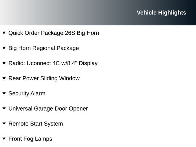 Beneath the bold exterior lies a heart of pure power. The legendary 5.7L HEMI V8 engine, paired with an 8-speed automatic transmission, delivers an exhilarating driving experience while maintaining impressive fuel efficiency. With 4-wheel drive capabilities, this Ram 1500 Classic Big Horn is ready to tackle any terrain, whether you're navigating the city streets or exploring the great outdoors.