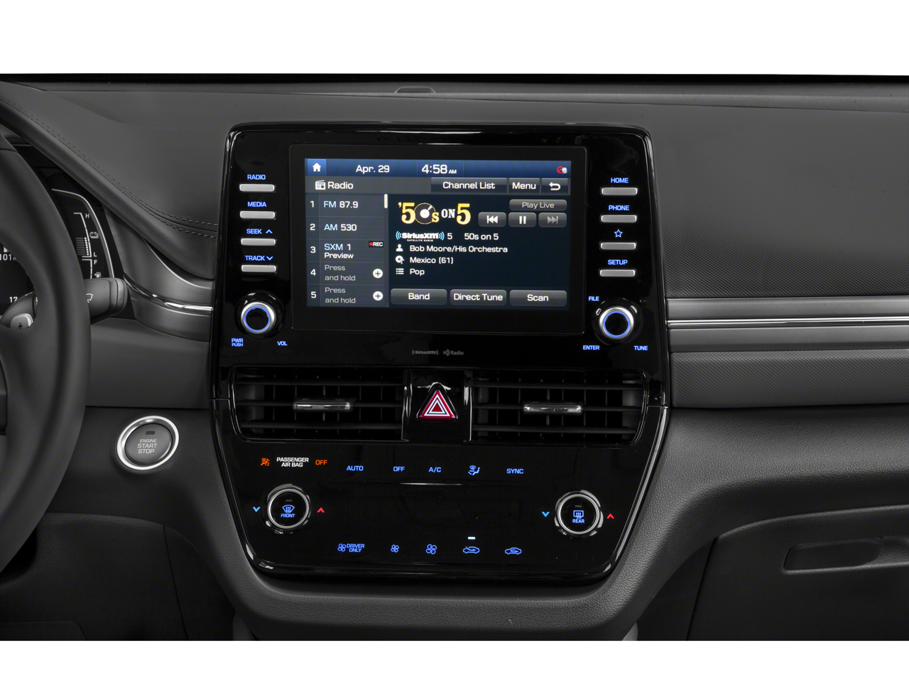• Radio: AM/FM Display Audio -inc: 8" high resolution color touchscreen display, rearview camera w/dynamic guidance, hybrid technology display, USB input jacks, Android Auto and Apple CarPlay integration for compatible smartphones, integrated Bluetooth® hands-free phone system w/phonebook transfer, SiriusXM satellite radio w/90-day trial (not available in AK and HI), HD Radio technology, USB charge port in center console, Blue Link connected car services and Blue Link connected care and remote package (for 3-years, enrollment required)