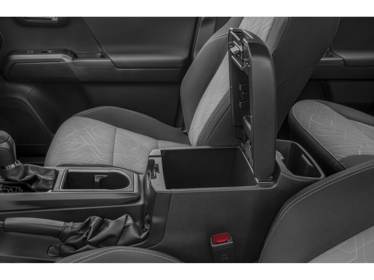 Inside, the Tacoma offers a comfortable and well-appointed cabin, with features like a power driver's seat, front center armrest, and a split-folding rear seat for versatile cargo-carrying capabilities. The Fabric Seat Trim and Leather Shift Knob add a touch of refinement to the rugged interior.