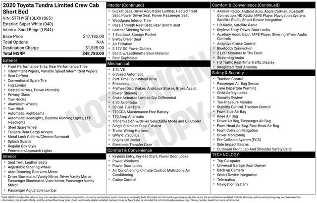 Experience the ultimate in truck versatility and refinement with the 2020 Toyota Tundra Limited. This well-equipped model delivers the power, comfort, and advanced technology you demand. Visit our showroom today and let us demonstrate how this exceptional truck can enhance your driving experience.