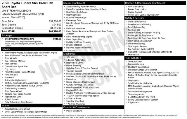 At our dealership, we take pride in offering our customers the very best in pre-owned vehicles. This 2020 Toyota Tundra SR5 is a shining example of the quality and reliability that Toyota is known for, and we're confident it will exceed your expectations.