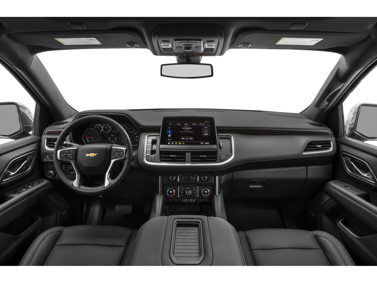 10-Way Power Driver & Passenger Seat Adjusters, 1st & 2nd Row Color-Keyed Carpeted Floor Mats, 2 USB Data Ports, 2nd Row Manual Bucket Seats, 3.23 Rear Axle Ratio, 3rd row seats: split-bench, 4-Wheel Disc Brakes, 9 Speakers, ABS brakes, Air Conditioning, Alloy wheels, AM/FM radio: SiriusXM with 360L, Apple CarPlay/Android Auto, Auto High-beam Headlights, Auto-Dimming Inside Rear-View Mirror, Auto-dimming Rear-View mirror, Automatic temperature control, Black Name Plates (LPO), Bose 9-Speaker Stereo Audio System Feature, Brake assist, Bright Front & Rear Door Sill Plates, Bumpers: body-color, Color-Keyed Carpeting Floor Covering, Compass, Delay-off headlights, Driver & Front Outboard Passenger Airbags, Driver door bin, Driver vanity mirror, Dual front impact airbags, Dual front side impact airbags, Electronic Stability Control, Emergency communication system: OnStar and Chevrolet connected services capable, Floor Console w/Storage Area, Four wheel independent suspension, Front & Rear Black Bowtie Emblems (LPO), Front anti-roll bar, Front Bucket Seats, Front Center Armrest, Front dual zone A/C, Front High-Back Reclining Bucket Seats, Front reading lights, Fully automatic headlights, Garage door transmitter, Hands-Free Rear Power Programmable Liftgate, HD Radio, Heated door mirrors, Heated Driver & Front Passenger Seats, Heated front seats, Illuminated entry, Infotainment Display, Leather Seat Trim, Leather steering wheel, Leather-Wrapped Steering Wheel, LED Daytime Running Lamps, Low tire pressure warning, Memory seat, Memory Settings for Driver, Not Equipped w/Automatic Stop/Start, Not Equipped w/Steering Column Lock, Occupant sensing airbag, Outside temperature display, Overhead airbag, Overhead console, Panic alarm, Passenger door bin, Passenger vanity mirror, Power door mirrors, Power driver seat, Power Liftgate, Power passenger seat, Power steering, Power windows, Preferred Equipment Group 1LT, Premium audio system: Chevrolet Infotainment 3, Premium Smooth Ride Suspension, Radio: Chevrolet Infotainment 3 Plus System, Rain sensing wipers, Rear air conditioning, Rear anti-roll bar, Rear reading lights, Rear seat center armrest, Rear window defroster, Rear window wiper, Remote keyless entry, Remote Start, Roof rack: rails only, Security system, SiriusXM Radio w/360L, Speed control, Speed-sensing steering, Split folding rear seat, Spoiler, Steering wheel mounted audio controls, Tachometer, Telescoping steering wheel, Tilt steering wheel, Traction control, Trip computer, Universal Home Remote, Variably intermittent wipers, Voltmeter, Wheels: 18 x 8.5 Bright Silver Painted Aluminum, Wheels: 20 x 9 Painted Aluminum.
