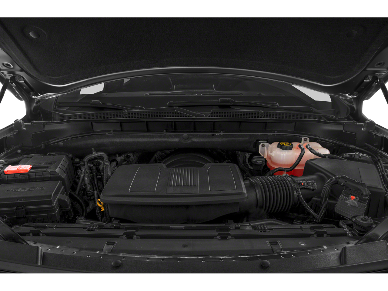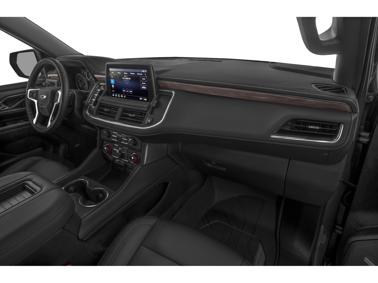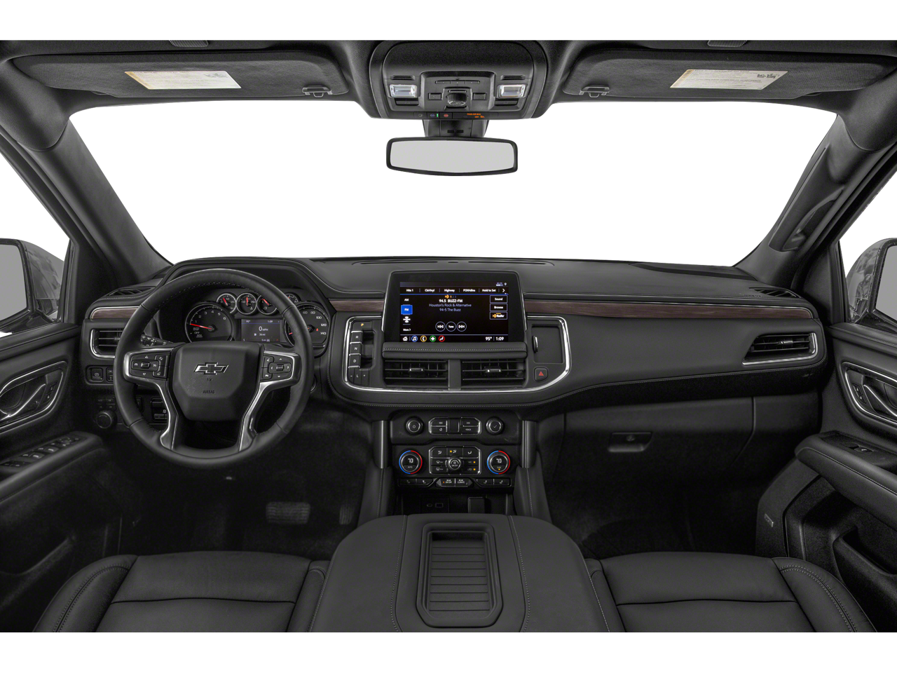 10-Way Power Driver & Passenger Seat Adjusters, 1st & 2nd Row Color-Keyed Carpeted Floor Mats, 2 USB Data Ports, 2-Speed Active Electronic AutoTrac Transfer Case, 2nd Row Manual Bucket Seats, 3.23 Rear Axle Ratio, 3rd row seats: split-bench, 4-Wheel Disc Brakes, 9 Speakers, ABS brakes, Air Conditioning, Alloy wheels, AM/FM radio: SiriusXM with 360L, Apple CarPlay/Android Auto, Auto High-beam Headlights, Auto-Dimming Inside Rear-View Mirror, Auto-dimming Rear-View mirror, Automatic temperature control, Black Exhaust Tip (LPO), Black Tubular Assist Steps, Bose 9-Speaker Stereo Audio System Feature, Brake assist, Bright Front & Rear Door Sill Plates, Bumpers: body-color, Color-Keyed Carpeting Floor Covering, Compass, Delay-off headlights, Driver & Front Outboard Passenger Airbags, Driver door bin, Driver vanity mirror, Dual front impact airbags, Dual front side impact airbags, Dual-Pane Power Panoramic Sunroof, Electronic Stability Control, Emergency communication system: OnStar and Chevrolet connected services capable, Floor Console w/Storage Area, Four wheel independent suspension, Front anti-roll bar, Front Bucket Seats, Front Center Armrest, Front dual zone A/C, Front High-Approach Angle Fascia, Front High-Back Reclining Bucket Seats, Front reading lights, Fully automatic headlights, Garage door transmitter, Hands-Free Rear Power Programmable Liftgate, HD Radio, Heated door mirrors, Heated Driver & Front Passenger Seats, Heated front seats, Hill Descent Control, Illuminated entry, Infotainment Display, Leather Seat Trim, Leather steering wheel, Leather-Wrapped Steering Wheel, LED Daytime Running Lamps, Low tire pressure warning, Memory seat, Memory Settings for Driver, Not Equipped w/Automatic Stop/Start, Occupant sensing airbag, Outside temperature display, Overhead airbag, Overhead console, Panic alarm, Passenger door bin, Passenger vanity mirror, Power door mirrors, Power driver seat, Power Liftgate, Power passenger seat, Power steering, Power windows, Preferred Equipment Group 2Z7, Premium audio system: Chevrolet Infotainment 3, Premium Smooth Ride Suspension, Radio: Chevrolet Infotainment 3 Plus System, Rain sensing wipers, Rear air conditioning, Rear anti-roll bar, Rear reading lights, Rear seat center armrest, Rear window defroster, Rear window wiper, Red Horizontal-Mounted Recovery Hooks, Remote keyless entry, Remote Start, Roof rack: rails only, Security system, SiriusXM Radio w/360L, Speed control, Speed-sensing steering, Split folding rear seat, Spoiler, Steering wheel mounted audio controls, Tachometer, Telescoping steering wheel, Tilt steering wheel, Traction control, Trip computer, Universal Home Remote, Variably intermittent wipers, Voltmeter, Wheels: 20 x 9 Machined Aluminum.