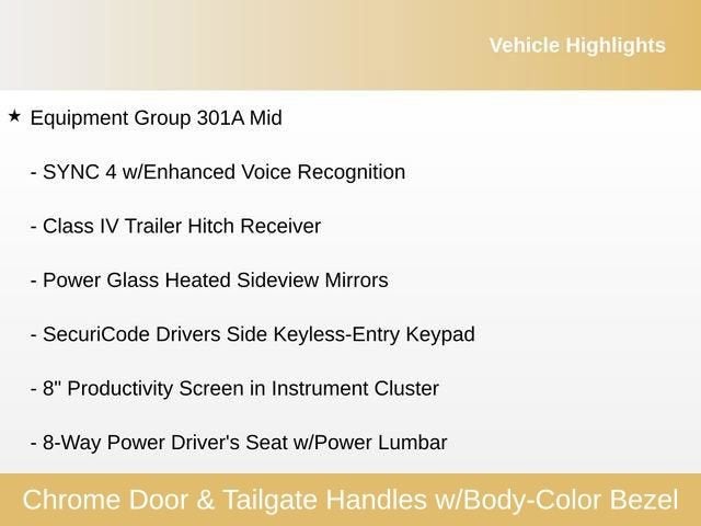 - SYNC 4 -inc: 8" LCD capacitive touchscreen w/swipe capability, wireless phone connection, cloud connected, AppLink w/App catalog, 911 Assist, Apple CarPlay and Android Auto compatibility and digital owners manual