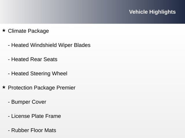 - CLIMATE PACKAGE with Heated Steering Wheel, Heated Rear Seats, and Heated Windshield Wiper Blades