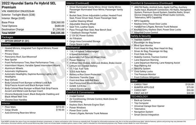 • Vehicle Name: Hyundai Santa Fe Hybrid