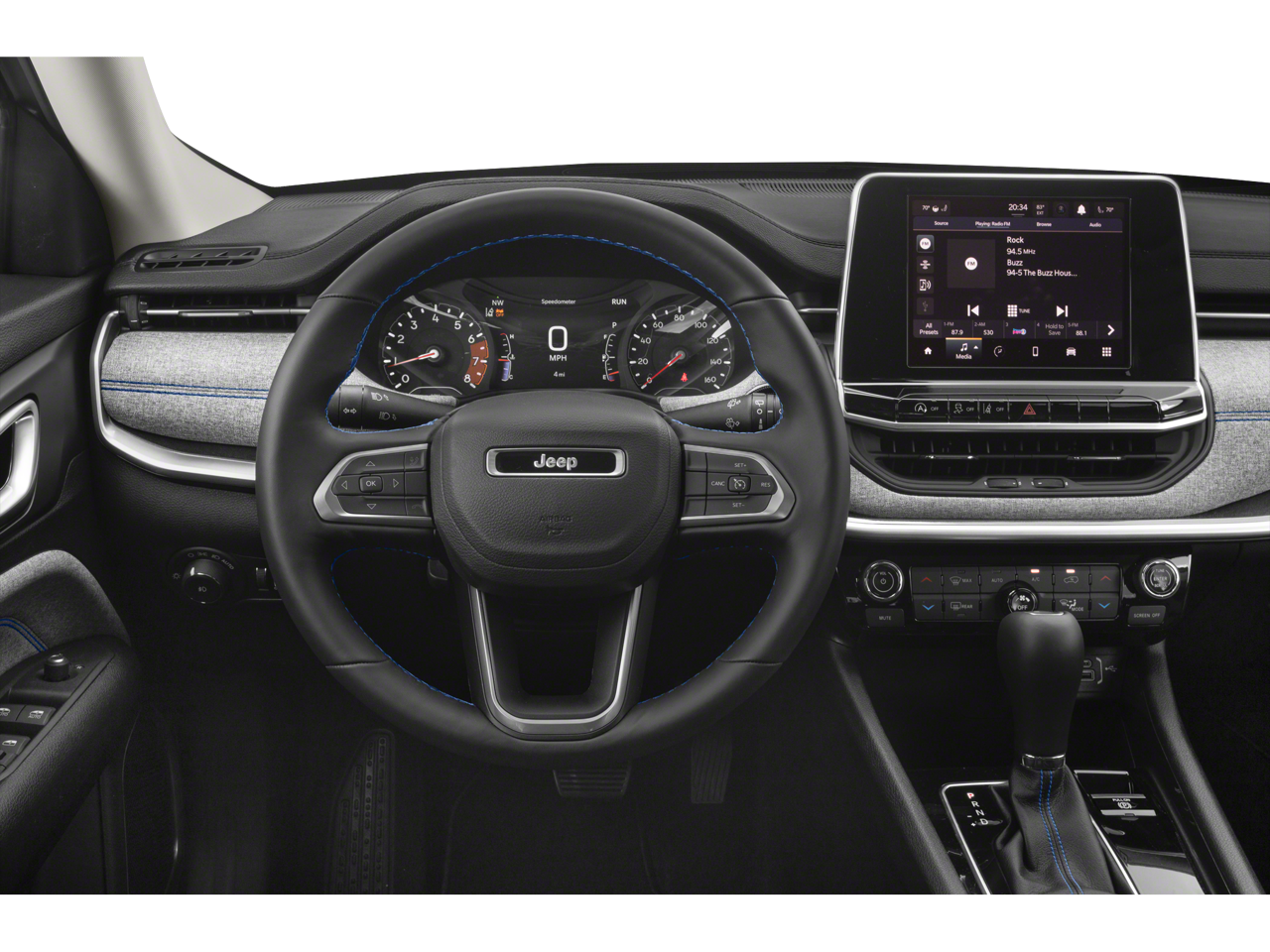 Step inside the Compass Latitude and experience the refined interior, featuring premium cloth and vinyl bucket seats, a leather-wrapped shift knob, and a MOPAR Molded Cargo Tray for your storage needs. The 10.1-inch Uconnect 5 display puts your music, navigation, and connectivity at your fingertips, while the 17-inch painted aluminum wheels add a touch of style.