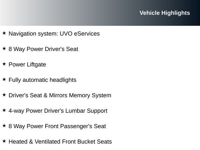 - Radio w/Seek-Scan, Clock, Speed Compensated Volume Control, Steering Wheel Controls, Voice Activation and UVO3 External Memory Control
