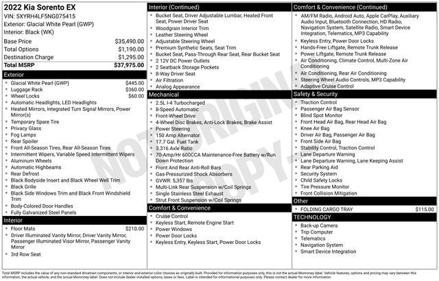 Whether you're embarking on a family road trip or tackling your daily commute, this 2022 Kia Sorento EX is the perfect companion. With its impressive performance, generous cargo space, and wealth of premium features, it's a true standout in the competitive SUV market. Visit our showroom today to experience the Sorento EX for yourself and discover why it's the perfect choice for your next vehicle.