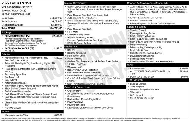 This 2022 Lexus ES 350 is a true masterpiece of automotive engineering, designed to elevate your driving experience to new heights. With its exceptional performance, advanced technology, and unparalleled attention to detail, it's the perfect choice for the discerning buyer seeking the ultimate in luxury and refinement.