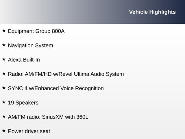 - Radio: AM/FM/HD w/Revel Ultima Audio System -inc: 19-speakers, MP3-capability, SiriusXM satellite radio w/a (3)-month prepaid subscription in the 48 contiguous states, Service not available in AK/HI, SiriusXM audio and data services each require a subscription sold separately, or as a package, by SiriusXM Radio, Inc, If you decide to continue service after your trial, the subscription plan you choose will automatically renew thereafter and you will be charged according to your chosen payment method at then current rates, Fees and taxes apply, To cancel you must call SiriusXM at 1-866- 635-2349, See SiriusXM customer agreement for complete terms at www.siriusxm.com, All fees and programming subject to change, Sirius, XM and all related marks and logos are trademarks of Sirius XM Radio Inc