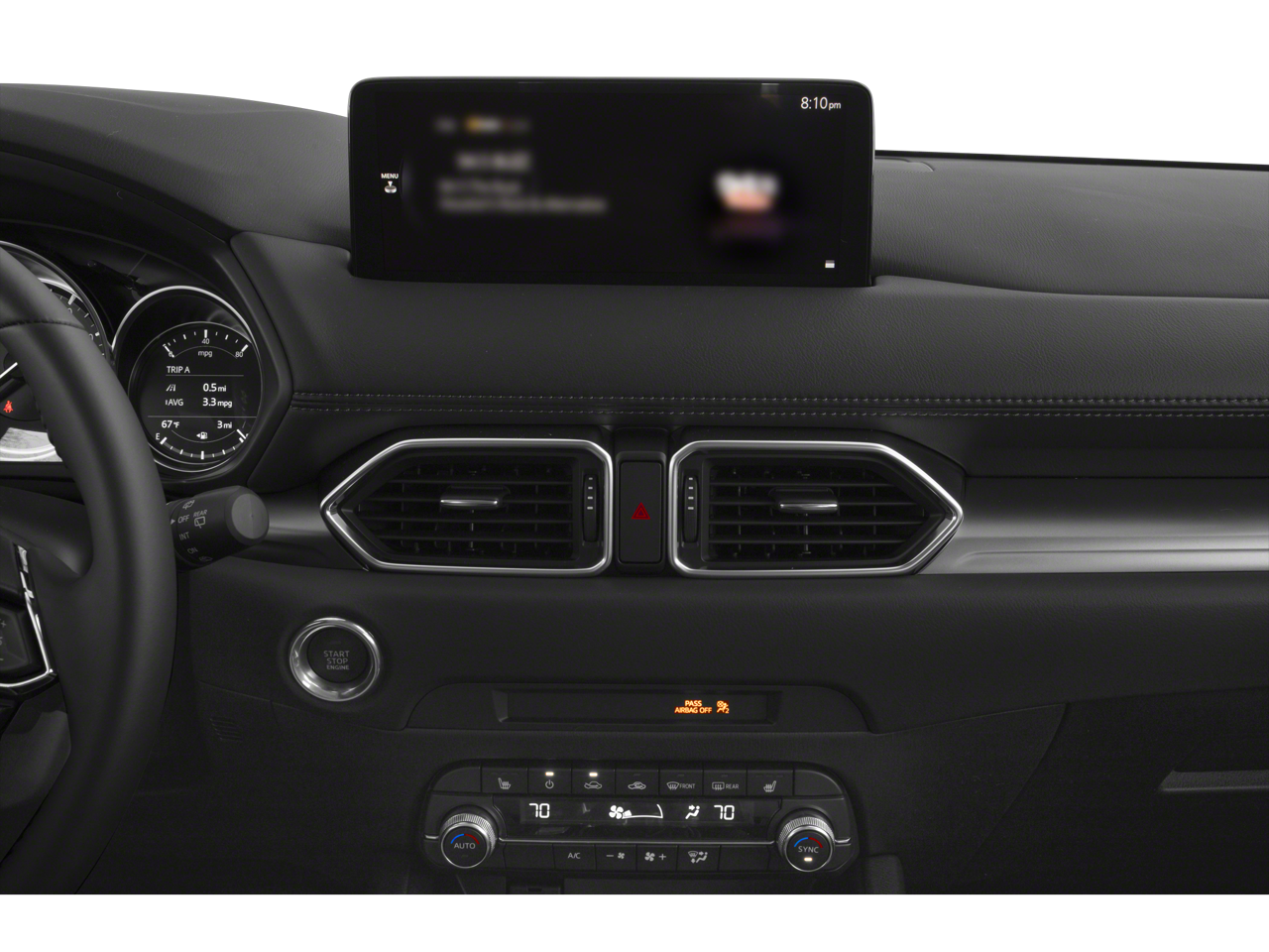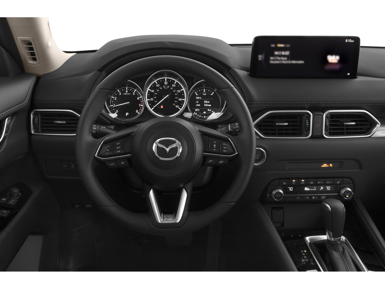 4-Wheel Disc Brakes, 4.624 Axle Ratio, 6 Speakers, ABS brakes, Air Conditioning, Alloy wheels, AM/FM radio, AppLink/Apple CarPlay and Android Auto, Auto High-beam Headlights, Automatic temperature control, Brake assist, Bumpers: body-color, Delay-off headlights, Driver door bin, Driver vanity mirror, Dual front impact airbags, Dual front side impact airbags, E911 Automatic Emergency Notification, Electronic Stability Control, Emergency communication system: MAZDA CONNECT, Exterior Parking Camera Rear, Four wheel independent suspension, Front anti-roll bar, Front Bucket Seats, Front Center Armrest w/Storage, Front dual zone A/C, Front reading lights, Fully automatic headlights, Heated Front Bucket Seats, HEATED FRONT SEATS, Illuminated entry, Infotainment System Voice Command, Leather Shift Knob, Leatherette Seat Trim, Low tire pressure warning, Multifunction Commander Control, Occupant sensing airbag, Outside temperature display, Overhead airbag, Overhead console, Pandora, Panic alarm, Passenger door bin, Passenger vanity mirror, Power door mirrors, Power driver seat, Power steering, Power windows, Radio Broadcast Data System Program Information, Radio data system, Radio: AM/FM/HD Audio System, Rain sensing wipers, Rear anti-roll bar, Rear reading lights, Rear seat center armrest, Rear window defroster, Rear window wiper, Remote keyless entry, SMS Text Msg Audio Delivery & Reply, Speed control, Speed-sensing steering, Split folding rear seat, Spoiler, Steering wheel mounted audio controls, Tachometer, Telescoping steering wheel, Tilt steering wheel, Traction control, Trip computer, Turn signal indicator mirrors, Variably intermittent wipers, Wheel Locks, Wheels: 17 x 7J Aluminum Alloy.