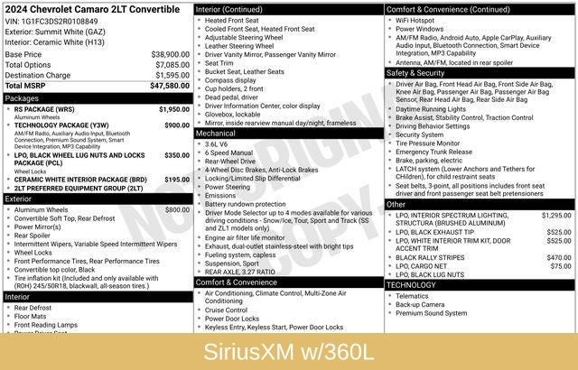 Boasting a host of premium features, the 2024 Camaro 2LT 2LT is designed to captivate your senses. Key highlights include: