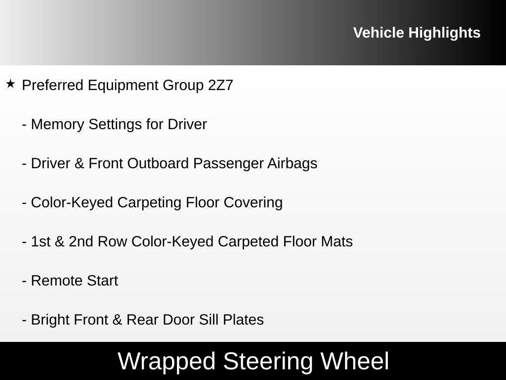 • Luxury Package: Includes Driver Alert Package, HD Surround Vision, Rear Pedestrian Alert, memory settings, heated and power-folding mirrors, power tilt and telescopic steering column, heated steering wheel, heated second-row seats, and power-folding second and third-row seats.