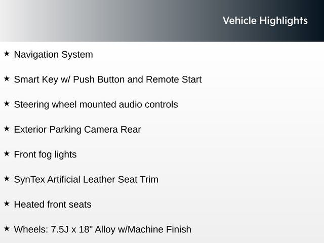 - Wheels: 7.5J x 18" Alloy w/Machine Finish