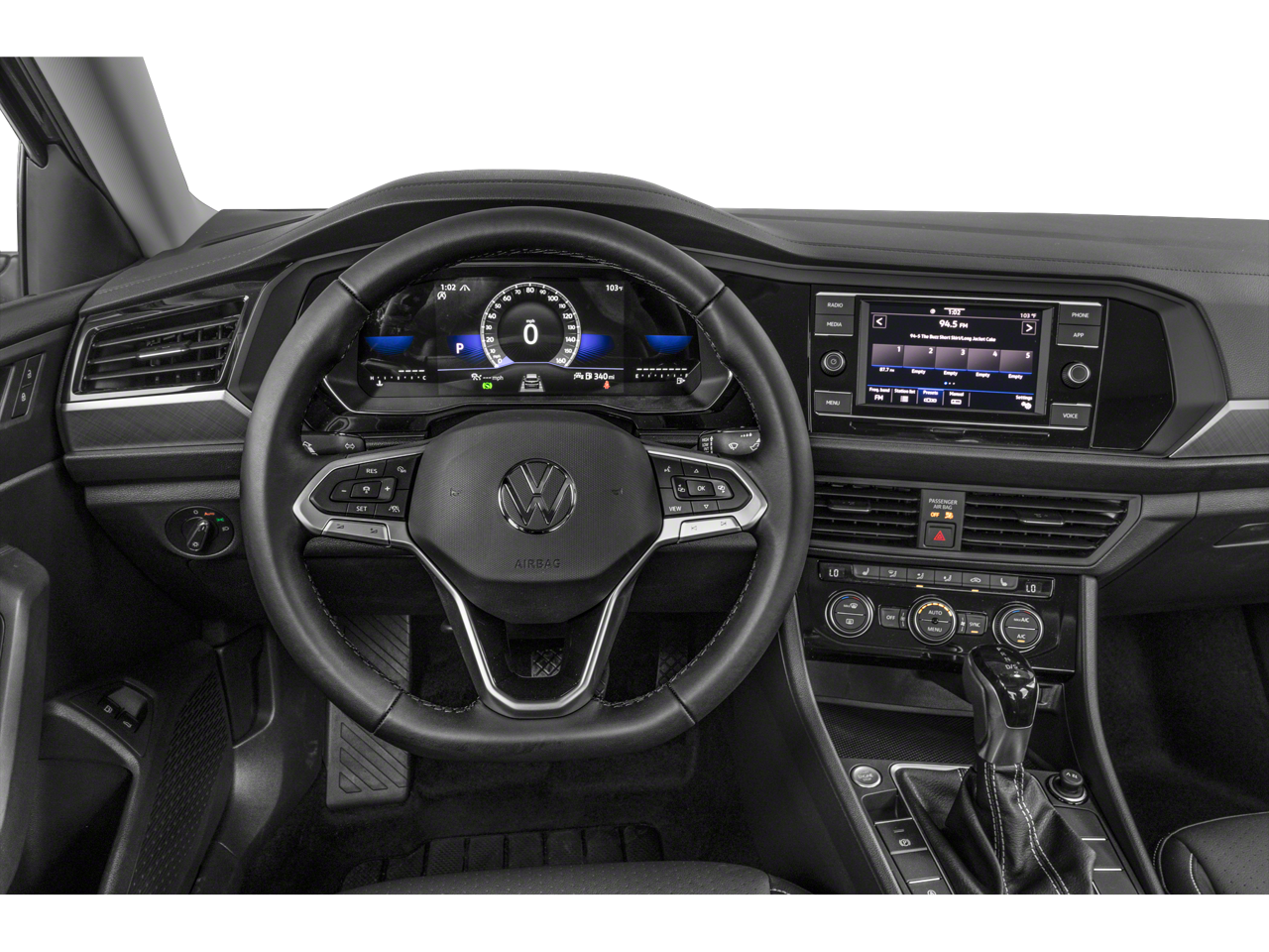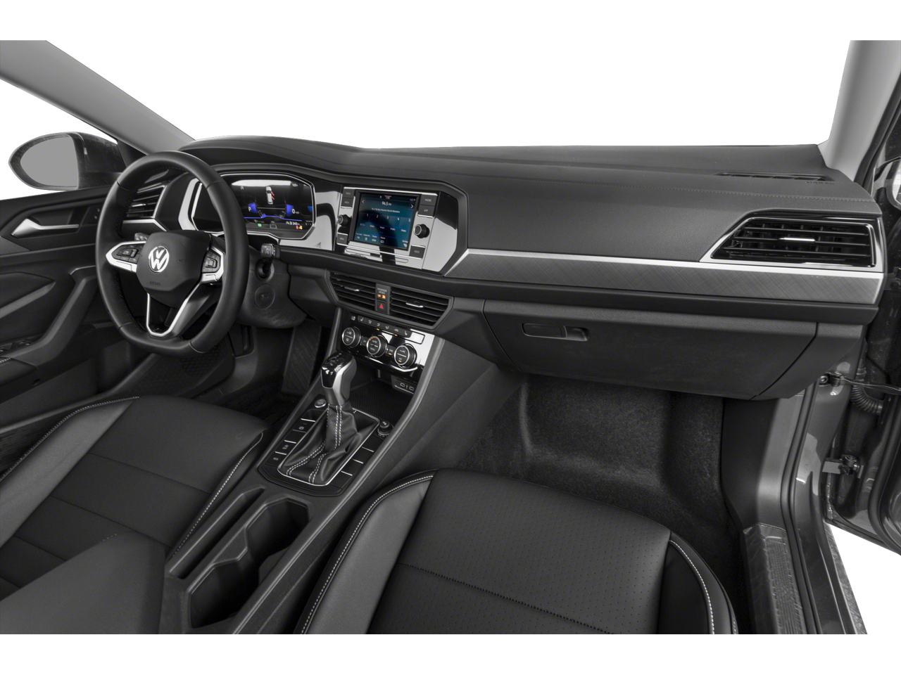 The Jetta's thoughtfully designed interior offers a host of premium features, including dual-zone automatic climate control, heated front seats, and a leather-wrapped steering wheel. The MIB3 Composition Color infotainment system with a 6.5-inch touchscreen keeps you connected and entertained on the go.