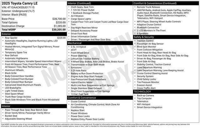 As you consider your next vehicle, we invite you to experience the exceptional quality and value of this 2025 Toyota Camry LE. Schedule a test drive today and discover why this sedan stands out as a smart, stylish, and reliable choice.